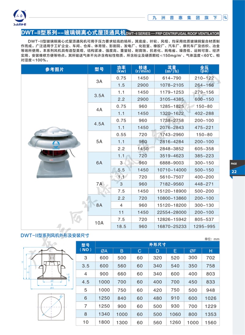 DWT-II玻璃鋼離心屋頂風(fēng)機(jī)